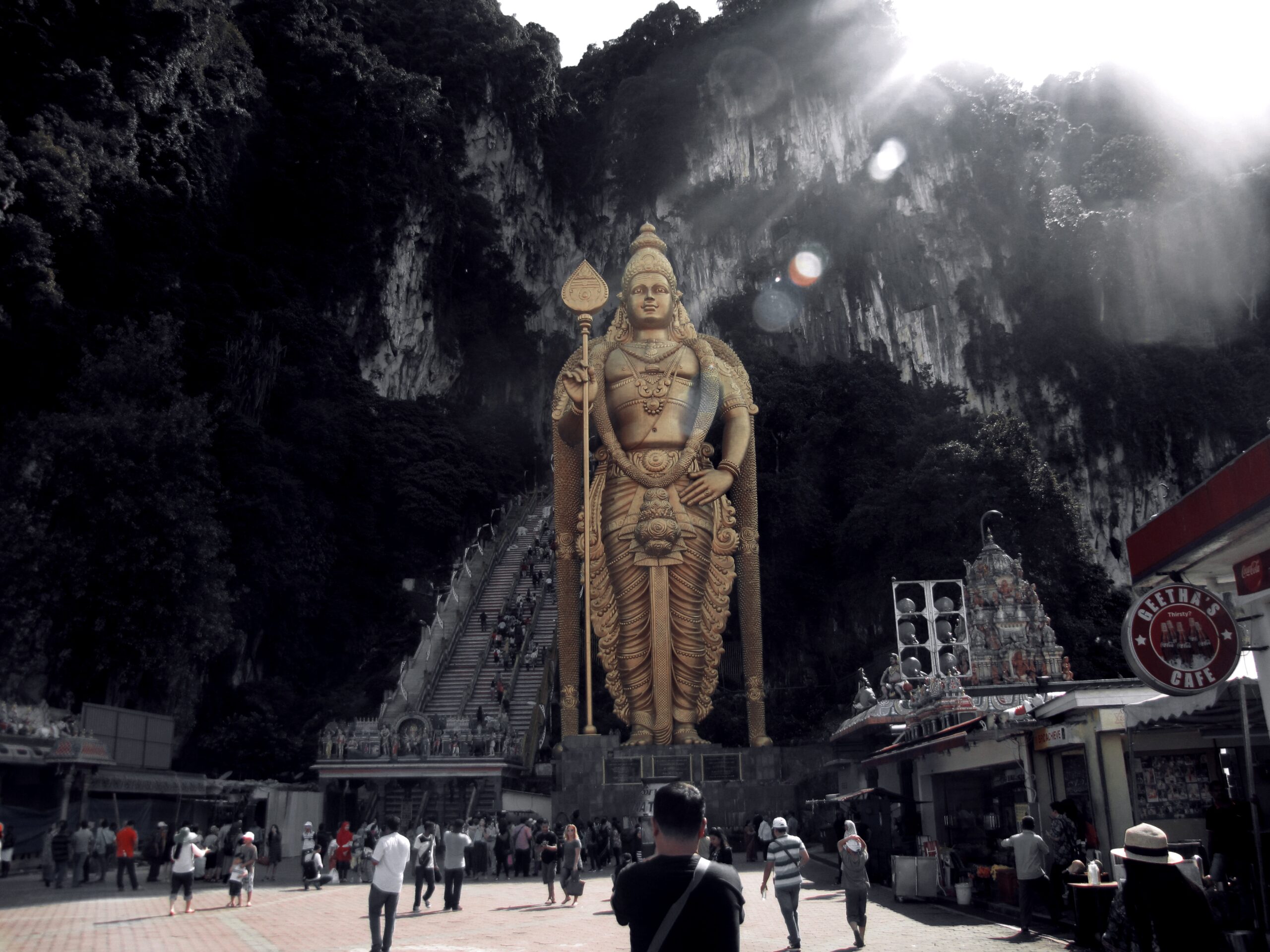 ബാറ്റു കേവ്സിലേക്കാണ് രാവിലത്തെ യാത്ര. പോകുംവഴി പകൽവെളിച്ചത്തിൽ നഗരത്തിന്റെ ചിലയിടങ്ങൾ കണ്ടു. കണ്ടുമറന്ന ഏതോ തമിഴ്നഗരം പോലെ.. നഗരാതിർത്തിയിലുള്ള ഒരു മലയുടെ ചെരുവിൽ വണ്ടിനിന്നു. മുന്നിൽ സ്വർണ്ണവർണ്ണത്തിൽ കൂറ്റൻപ്രതിമ. ഇതാണ് വായിച്ചറിഞ്ഞ, വാർത്തകളിൽ കണ്ടുനിറഞ്ഞ മലേഷ്യൻ മുരുകൻ. പിന്നിൽകാണുന്ന മലയോളം വളർന്ന് അക്ഷോഭ്യനായി നിൽക്കുന്നു. ഇരുന്നൂറ്റമ്പതിൽപരം പടികളാണ് ഗുഹയിലേക്കുള്ള ദൂരം. വെയിൽ തിളച്ചുമറിയുന്നു. വലിയ ആയാസമില്ലാതെ പടവുകൾ പിന്നിട്ടു. മുന്നിൽ ഗുഹാമുഖം.അതിനുള്ളിൽ പ്രകൃതിയൊരുക്കിയ ചിത്രവേലകൾ. എത്ര വലിപ്പമുള്ള ഗുഹയാണത്…!!!! മലതുരന്നു നിൽക്കുന്ന മേൽക്കൂടിലൂടെ സൂര്യൻ അകത്തേയ്ക്ക് വരുന്നുണ്ട്… ഉള്ളിൽ ചെറിയൊരു ക്ഷേത്രം.ഒന്നു ചുറ്റിത്തിരിച്ചിറങ്ങി. പാതിവഴിയിൽ മറ്റൊരു ഗുഹാമുഖം..??? ഡാർക്ക് കേവ് ആയിരുന്നു
