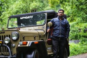 അദ്ദേഹത്തിന്റെ മഹീന്ദ്ര ജീപ്പ് തയാറായിക്കിടക്കുന്നു.