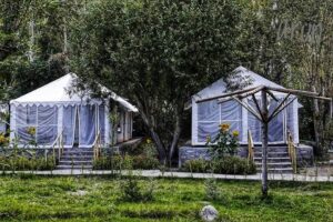 പച്ചപ്പിനിടയിൽ സന്ദർശകർക്കുള്ള താമസസൗകര്യങ്ങൾ, ടെന്റുകൾ ഒരുക്കിയിരിക്കുന്നു.