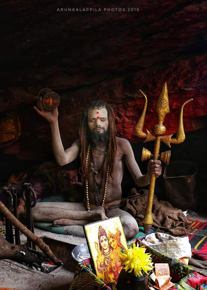 ഗുഹയിൽ ശിവരൂപിയായൊരു സന്യാസി തീർത്ഥാടകർക്കായി ദർശനം നൽകുന്നു.
