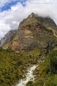 ഈ നടപ്പാതയിൽ ഏഴു കിലോമീറ്റർ അകലെയാണ് വസുധാര ഫാൾസ്..