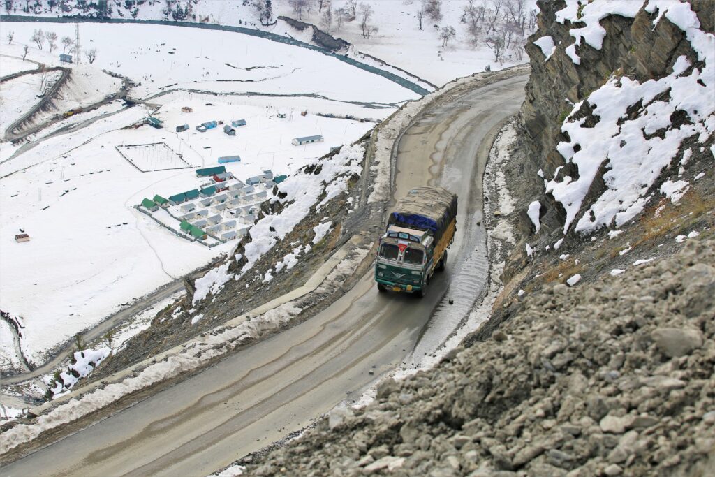 പിന്നിൽ കൂറ്റൻ മലനിരകൾക്കിടയിൽ സോജി ലാ മനോഹരമായൊരു കാഴ്ചയാകുന്നു.